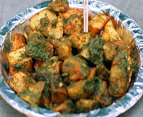 2. फिर इसे तंदूर या अवन में 2-3 मिनट तक हर तऱफ से सुनहरा कर लें। सो़ख्ता पेपर पर कुछ देर रखकर पुदीना-खजूर की चटनी, दही, काला नमक, जीरा, नमक और लाल मिर्च पाउडर डालकर गरमागरम सर्व करें।