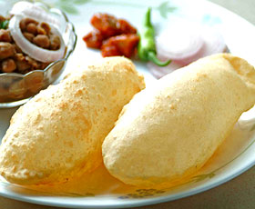 3. मैदे की लोई बनाकर उसमें भरावन मिश्रण भरकर हाथ से थपथपाकर या बेलन से बेलकर पहले से गर्म तेल में सुनहरा तल लें। गरमागरम भटूरे प्याज, हरी मिर्च और छोले के साथ सर्व करें।