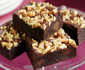 5. बचे हुए अखरोट उसके ऊपर डालें। फिर 180 डिग्री सेंटीग्रेड पर पहले से गर्म किए हुए अवन में आधा घंटे बेक करें। ठंडा करके चौकोर टुकड़ों में काटकर सर्व करें।